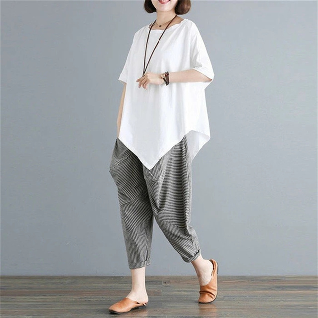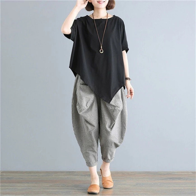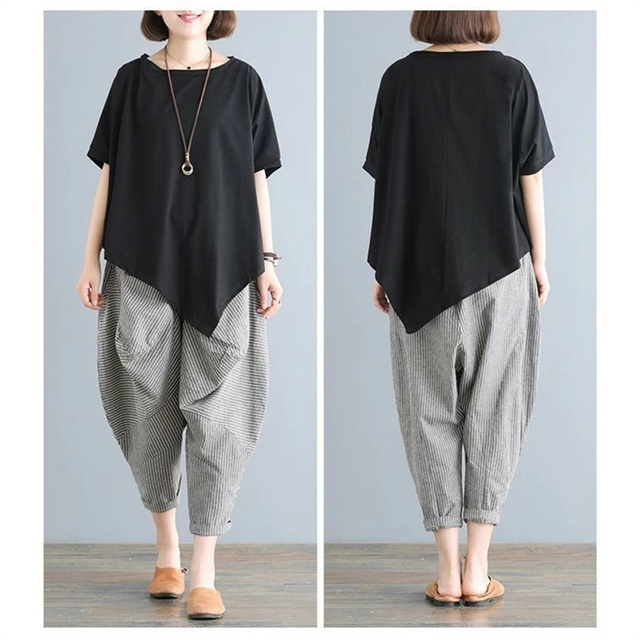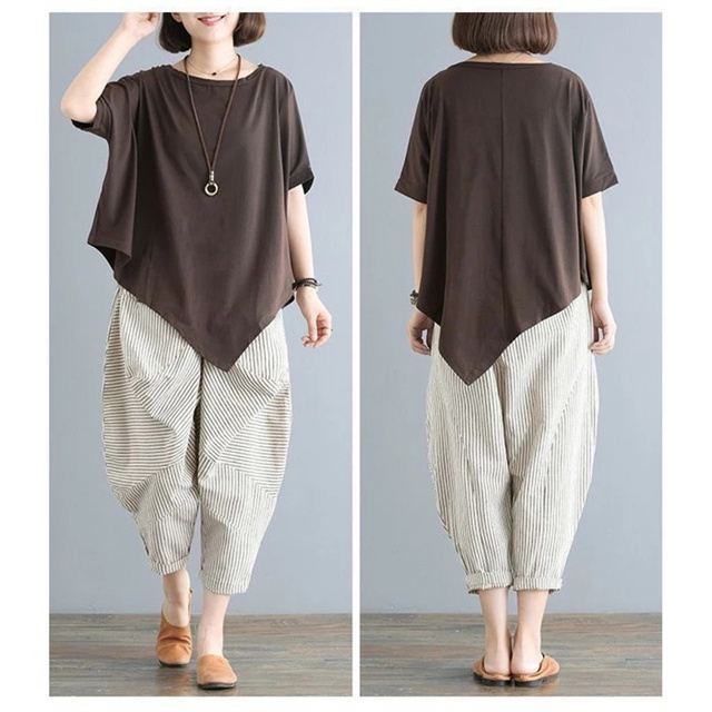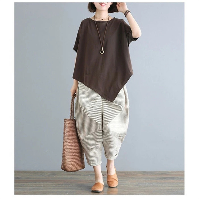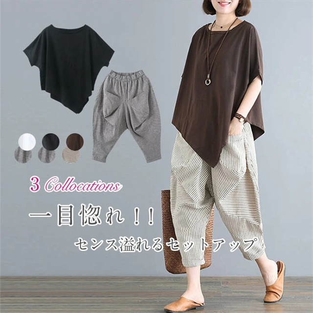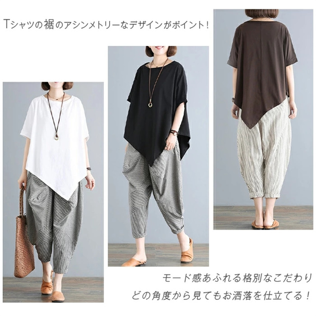 レディース 夏 上下2点セット 半袖tシャツ不規則 ガウチョパンツ ゆったり 大きいサイズ カジュアル 夏新作