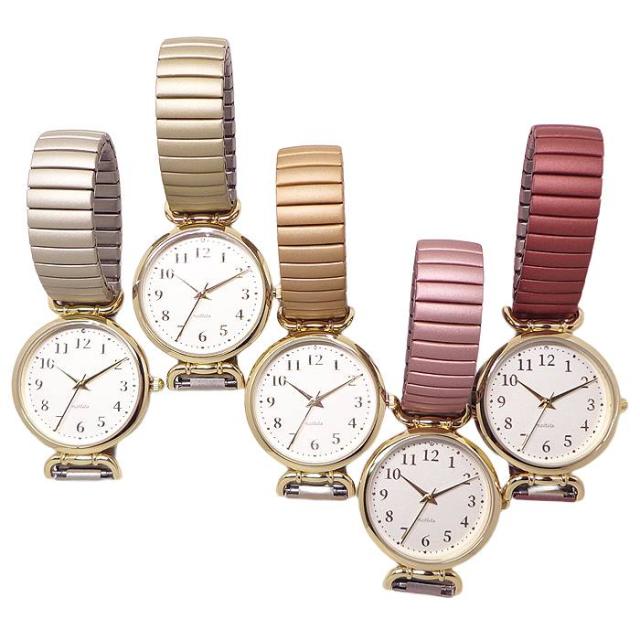 伸縮ベルト 簡単装脱着 ジャバラ 蛇腹 バンド カラフル おしゃれ かわいい ベルト調整不要 楽々ベルト パールカラー 見やすい 文字盤