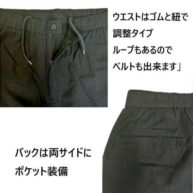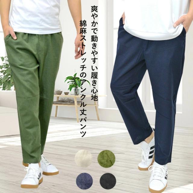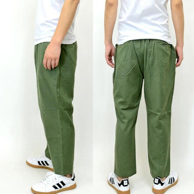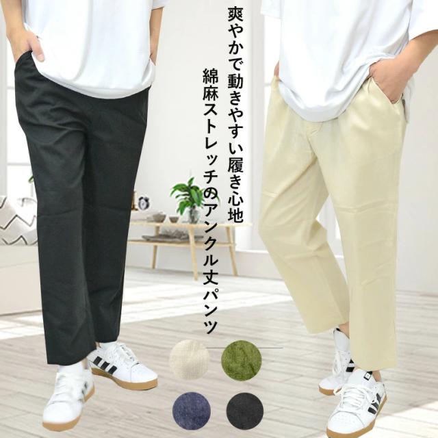 【閉店セール】新作 綿麻 アンクルパンツ ワイドパンツ 大人 30841 カジュアル ファッション ベージュ カーキ ネイビー ブラック 黒 春 夏 夏 涼しい 旅行 ゆったり イージーパンツ クロップドパンツ 冷感 涼しい 春夏 夏用 部屋着 パンツ メンズ M L LL