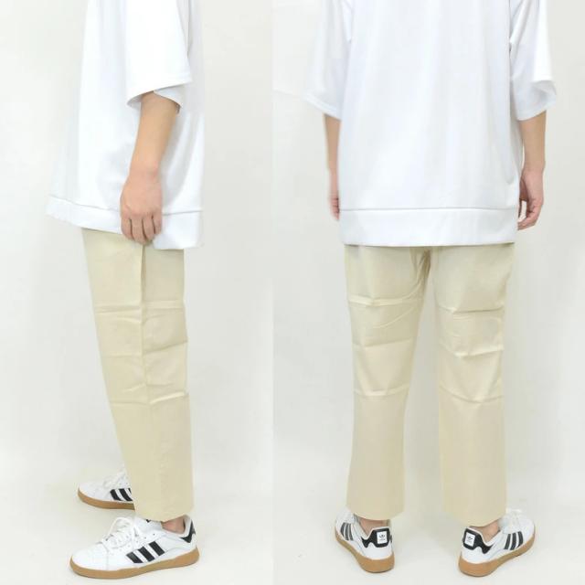 ルーズなスタイルのワイド幅も快適な着用感を実現しておりアンクル丈とテーパードシルエットでファッション性も高い仕上がり。