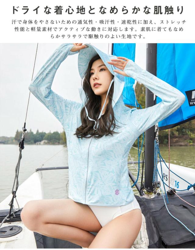 ラッシュガード レディース 接触冷感 ラッシュガード ロングパーカー レディース UPF50+ M〜4L UVカット98% ラッシュパーカー 体型カバー 長袖 ロング丈 水着 紫外線対策 UV