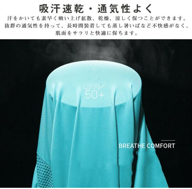 薄手でしっかりUVカット 涼感素材 体型カバー UPF50+で日焼け対策に 虫刺されすり傷対策に 汗ばむ季節もベタつきなし