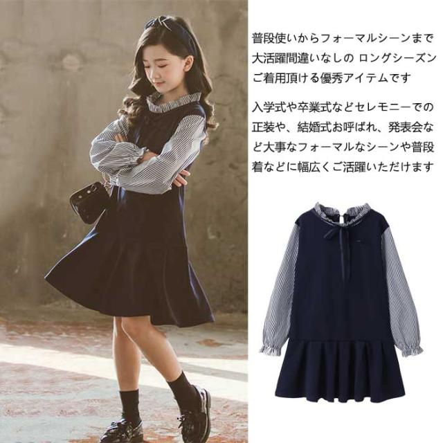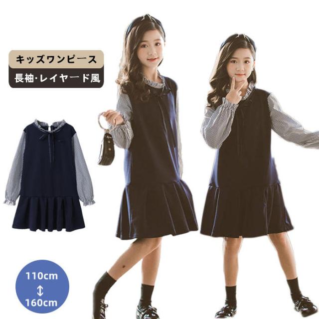 商品名:ワンピース 女の子 春服 長袖 膝丈 フォーマル 可愛い おしゃれ 子供ドレス ワンピ レイヤード風 キッズ 切り替え きれいめ 大きいザイズ 春秋 お受験 通学 ピアノ発表会 七五三 結婚式 演奏会 発表会 卒業式 卒園式 ドレス プリンセス 子供服 大人っぽいワンピース お姫様 ジュニア 小学生 送料無料