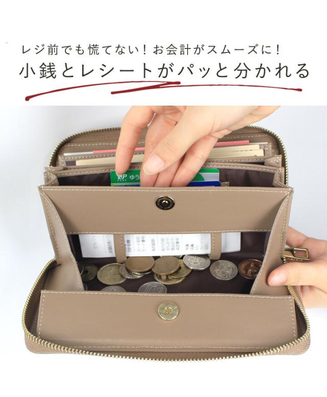 小銭とレシートが、自動的に分けて収納出来る本革長財布。
