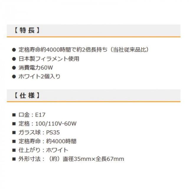 OHM 長寿命ミニクリプトン電球 E17 60W形 ホワイト 2個入 LB-PS35L60W-2P |b03