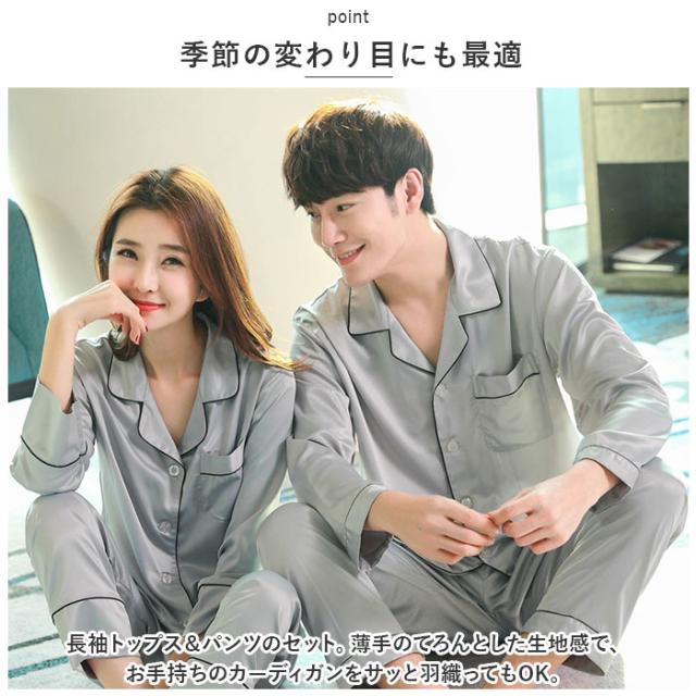 ルームウェア レディース 上下 通販 パジャマ 部屋着 ナイトウェア ウエア 寝間着 寝間き ねまき 長袖 前開き 上下セット セットアップ 春 秋 冬 ペア カップル サテン 旅行