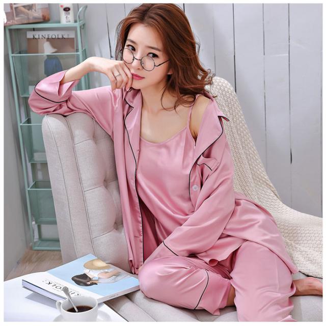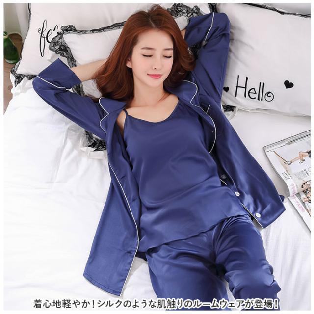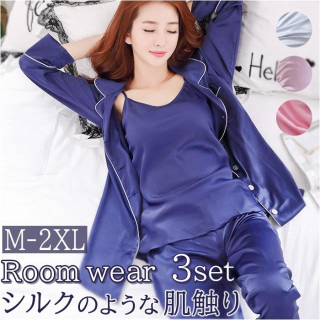 ルームウェア レディース 上下 通販 パジャマ 部屋着 ナイトウェア ウエア 寝間着 寝間き ねまき 長袖 前開き 上下セット セットアップ 春 秋 冬 3点セット キャミソール インナー