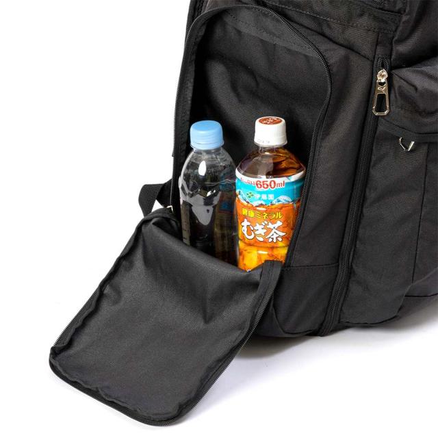 ・前面と両側面にファスナーポケット、さらにメインルームにもファスナーポケットとオープンポケットがあります。