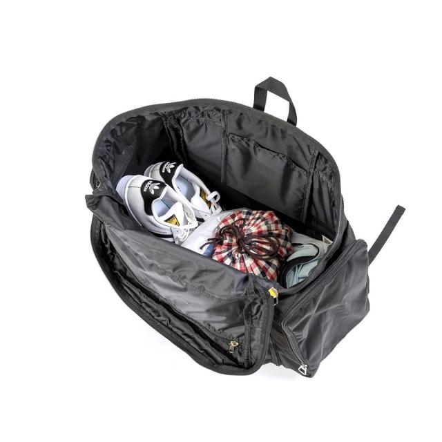 ・ファスナー開閉で容量が拡張できるタイプで、帰りの荷物が増えても安心。