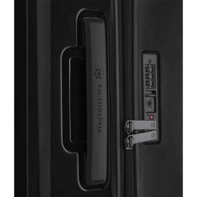 「エアロックス ラージ ハードサイド」はまさにビクトリノックスの革新性を体現。現在市販されているラゲッジでは世界最軽量クラスです。また、卓越した耐久性を前面に出した素材、100%純正ポリカーボネートを採用しています。360度の操作性を実現する60mmデュアル・キャスター・ホイールにより、ほとんど重さを感じさせません。加えて、静音性に優れたLisofタイヤを採用したHINOMOTO社製ホイールを用いることで、スイスが誇る優れた製造技術の極致に到達。