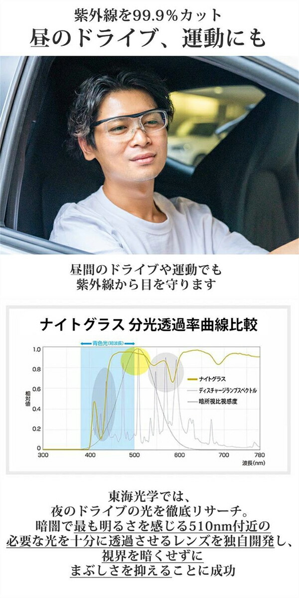 東海光学 ナイトグラス フリー ドライブ 夜用メガネ 一般医療機器