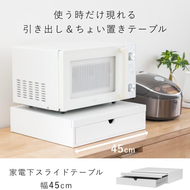 レンジラック 家電下スライドテーブル 幅45cm ( レンジ下ラック 家電下ラック 家電ラック レンジ下トレー スライドトレー キッチンラック 木製 レンジトレー スライド トレー おしゃれ レンジ下 台 引き出し )