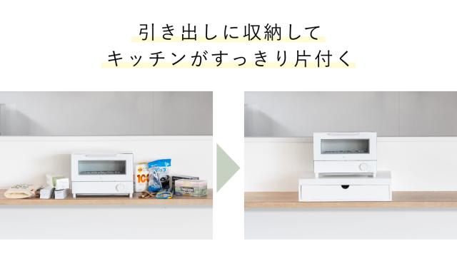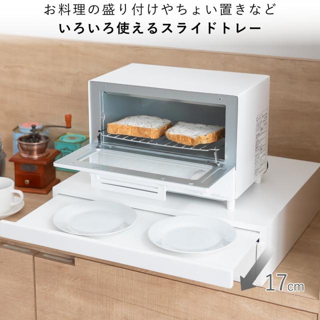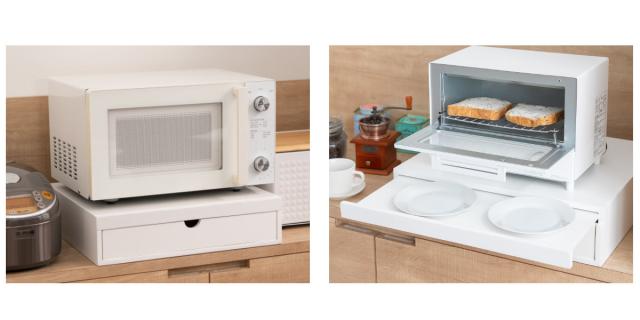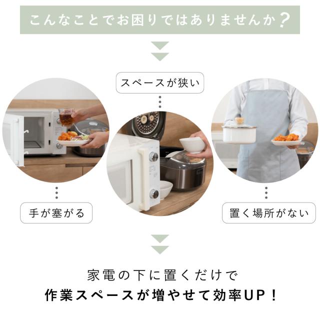 電子レンジやトースター、ジューサーなど小物家電にピッタリのサイズです。フラットな作りだから狭いキッチンでも邪魔にならずに使用できます。
