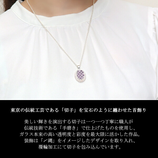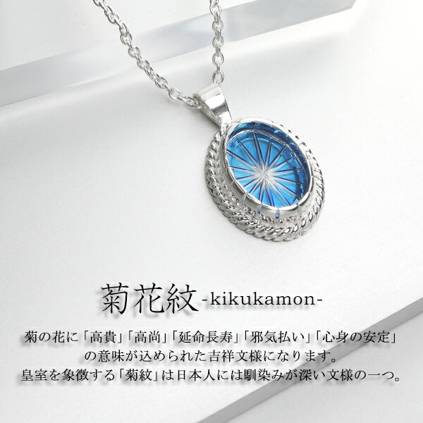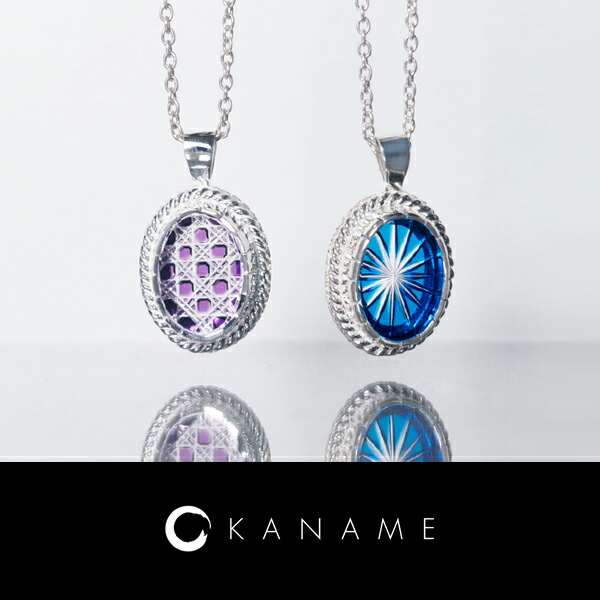 KANAME 切子 ガラス 菊花紋 八角籠目 ネックレス シルバー925 シルバーアクセサリー シルバー ガラス 切子ガラス 和風 和 和柄 伝統柄 伝統工芸
