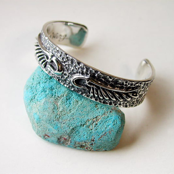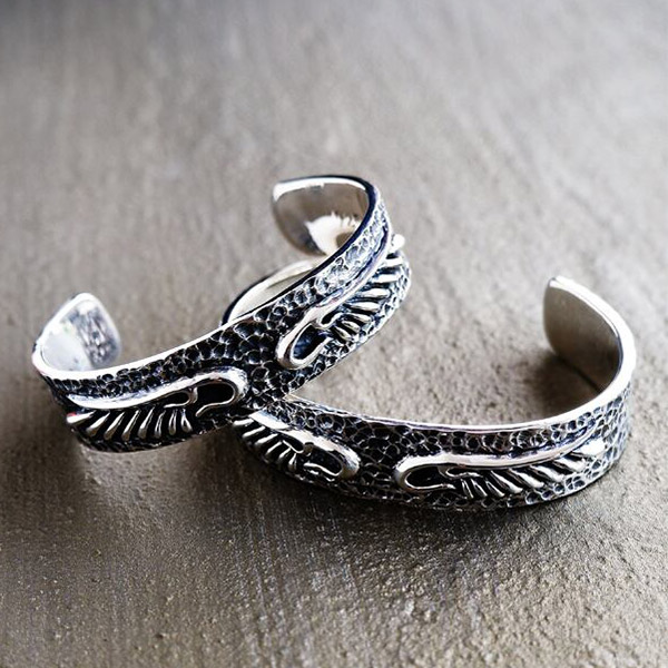 Give Me a Wing 平打ち バングル テクスチャー シルバー メンズ シルバー925 シルバーバングル ブレスレット ブレス 腕輪 幅広 大きめ 翼 羽