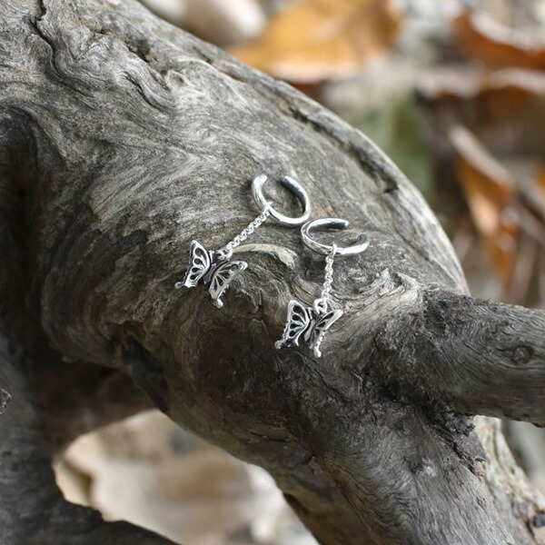 小振りでかわいいアゲハ蝶のシルバーイヤーカフス。