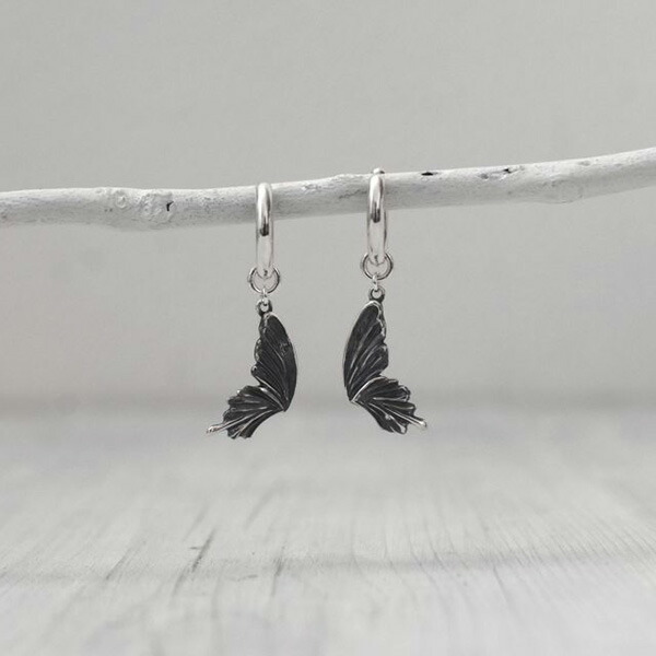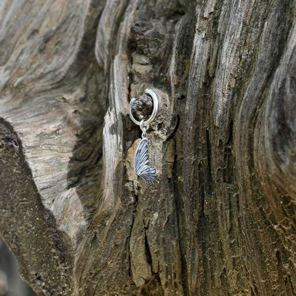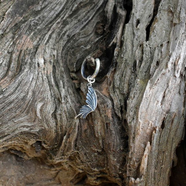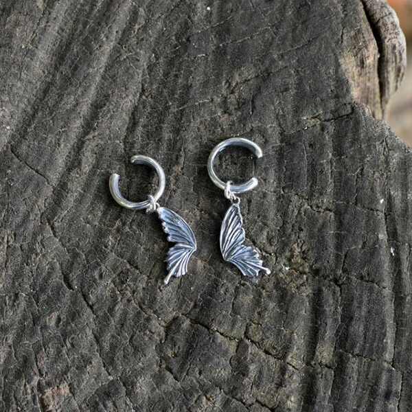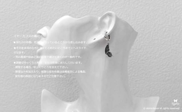アゲハ蝶の片羽根デザインのシルバーイヤーカフス。