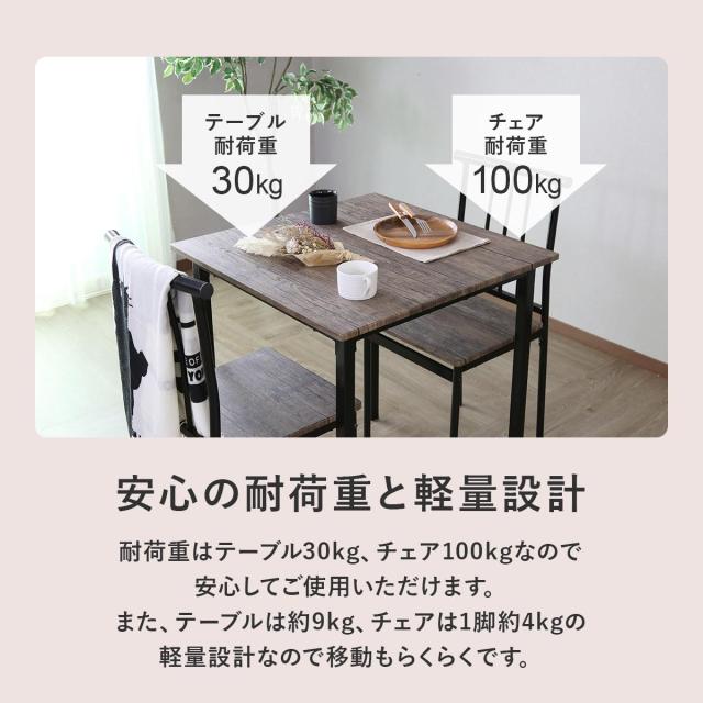1人暮らしのワンルームや2人暮らしのLDKに置いても圧迫感を感じにくいコンパクトなダイニングセットです。