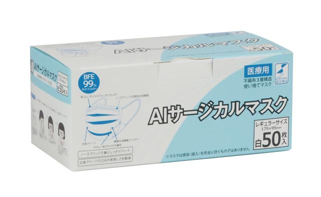 【マスクがお買い得価格】AI サージカルマスク レギュラー(ホワイト) 61101 50枚入り 【保護マスク/衛生】