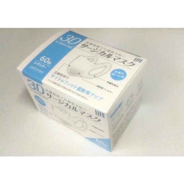 ・日本製 立体マスク レギョラー3層 60枚入り、箱付き包装。
