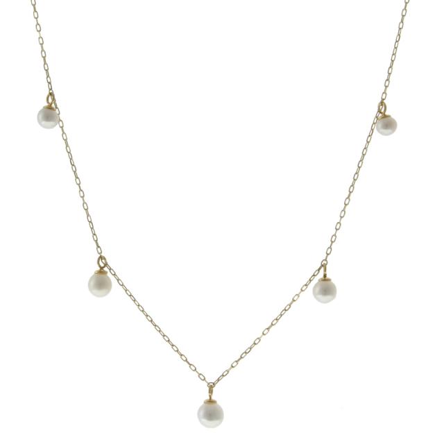 パールサイズ:約4.0mm、3.5mm、3.0mm ◆素材:K10イエローゴールド ◆付属品:当店オリジナルラッピング、販売証明書(当店発行) 淡水パールが等間隔にセットされた華奢で繊細なネックレス。 センターに来るパールが大きく、サイドのパールは少しサイズが小さくなっているグラデーションデザインです。