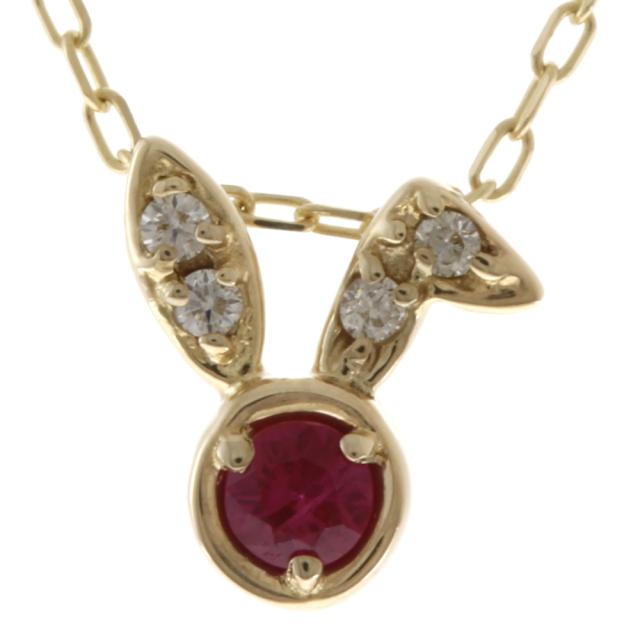 うさぎ ラビット 干支 ネックレス 10金 K10イエローゴールド ルビー ダイヤモンド 0.02ct レディース 新品 R&Kリサイクルキング