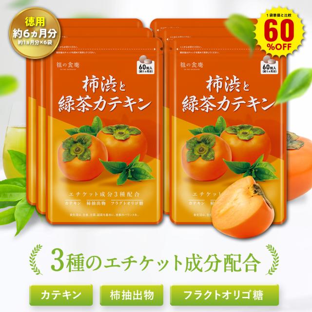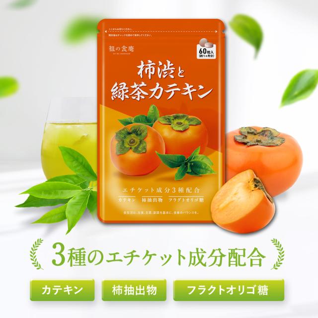 1袋単価比較で半額!【徳用/約3ヵ月分】柿渋&緑茶カテキン サプリ (約1ヵ月分×3袋) 柿タンニン フルクタオリゴ糖 ナタ豆茶粉末 香り エチケット
