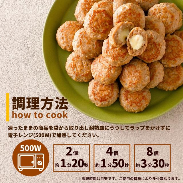 - チーズもお肉も美味しいです。レンチンで簡単に美味しいお弁当のおかずになります。2袋買ったので、休みの日はミニバーガーにしたりして頂いています。