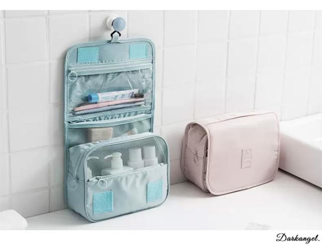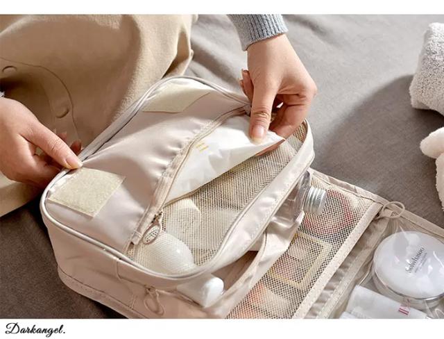 旅行や普段使いにも便利な吊り下げトラベルポーチ。