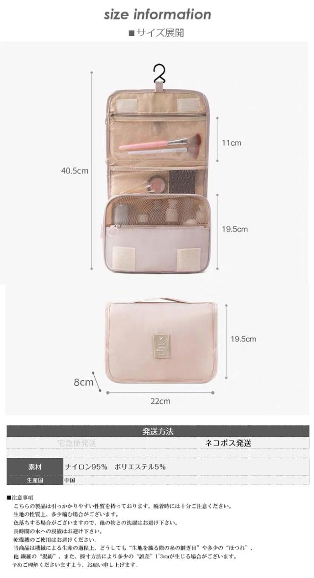 1,500円OFFクーポン!トラベルポーチ 吊り下げ ポーチ 大きめ マチ バスアメニティバッグ ハンギングポーチ ネイビー ピンク ベージュ ライトブルー 旅行用ポーチ 【 吊り下げトラベルポーチ 】ダークエンジェル to2023-0285 新生活 春新作 ●即納●