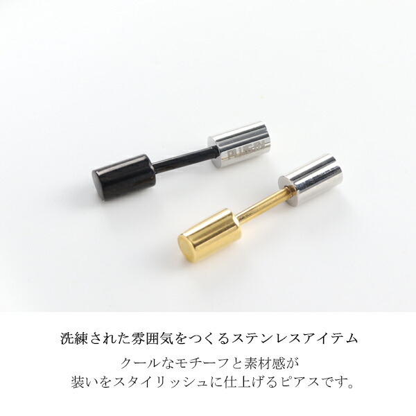 PLUG IN 選べる2カラー ステンレス ツートンカラー スティック ピアス 1P 片耳用 サージカルステンレス スタッドピアス ステンレスピアス