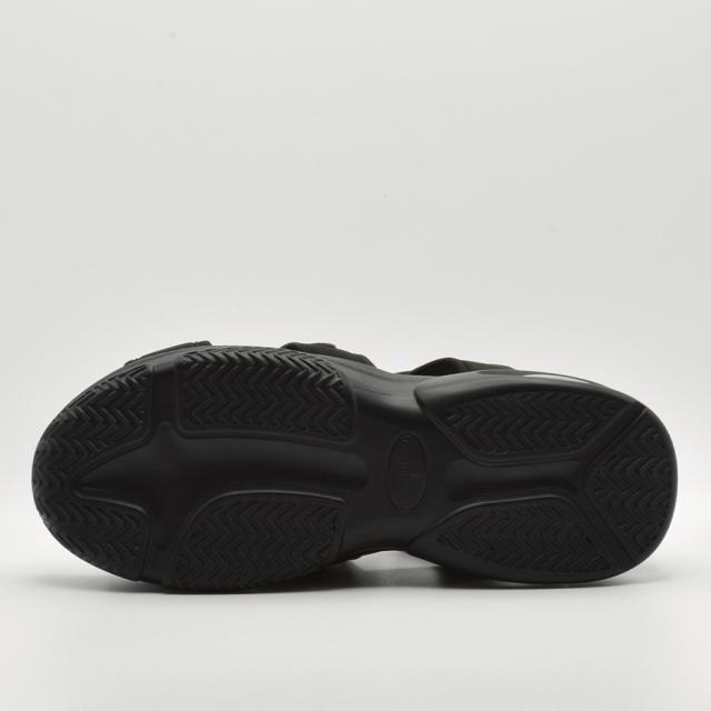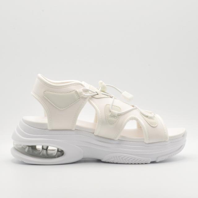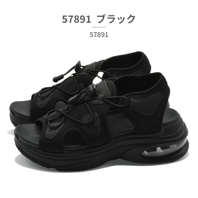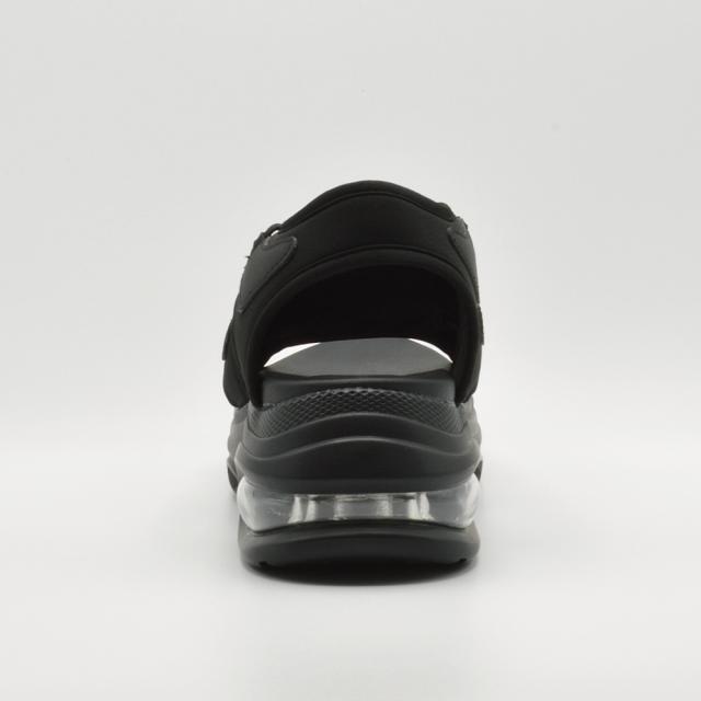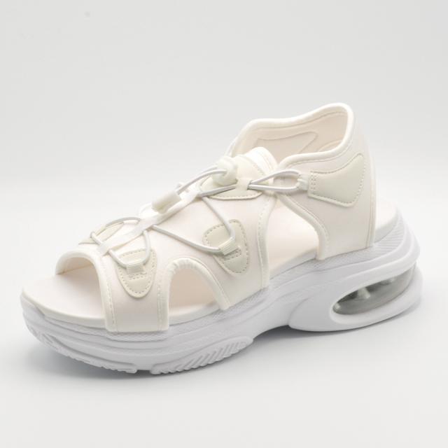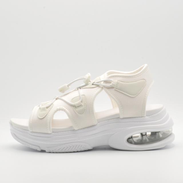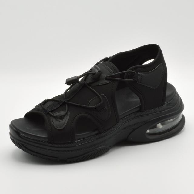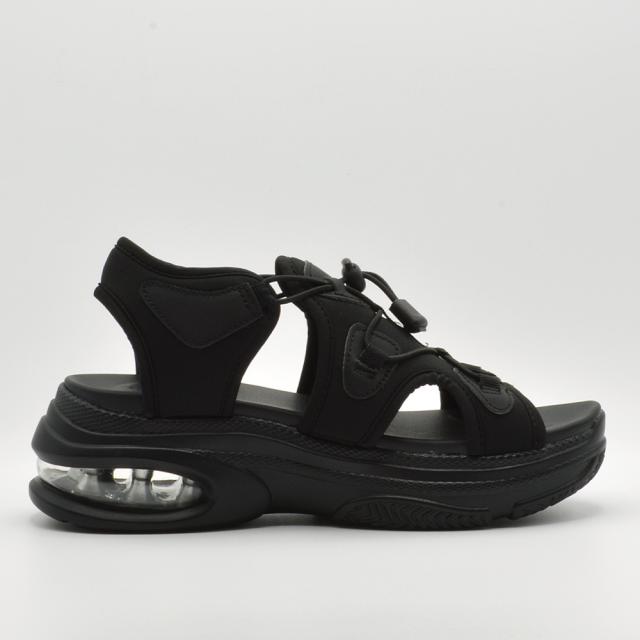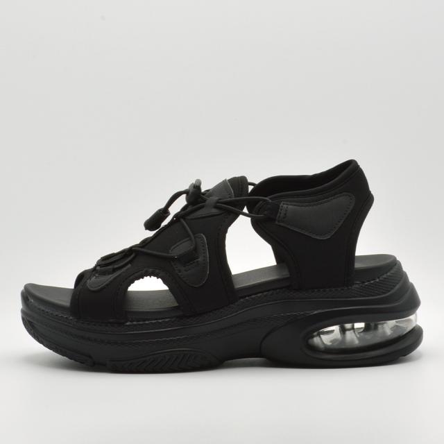 エアソールの入った厚底 ストラップサンダルで足元をスッキリ魅せられる。