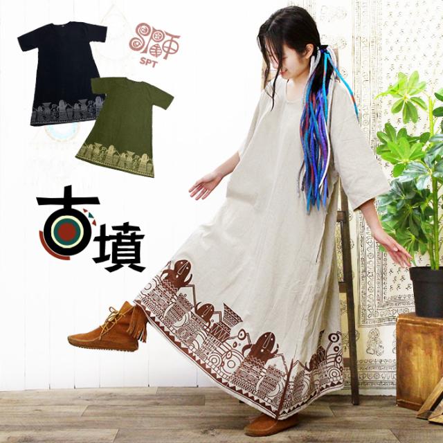 エスニック ロングワンピース ロング丈 レディース 【SPT】ハニワプリント ピラミッドライン ワンピース 2025年秋冬 【メール便不可】