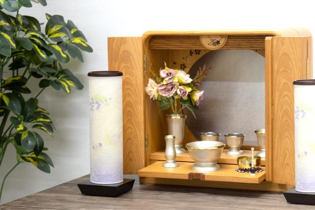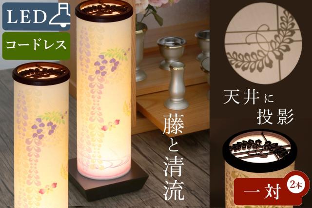 盆提灯 初盆 新盆 モダン 仏具 一対 セット 夏あかり・岐阜シリーズ 藤と清流 美濃和紙 電池式 コードレス LED ミニ 小型 二重張り 天井にも投影 和 行灯 提灯 仏壇 仏花 贈り物