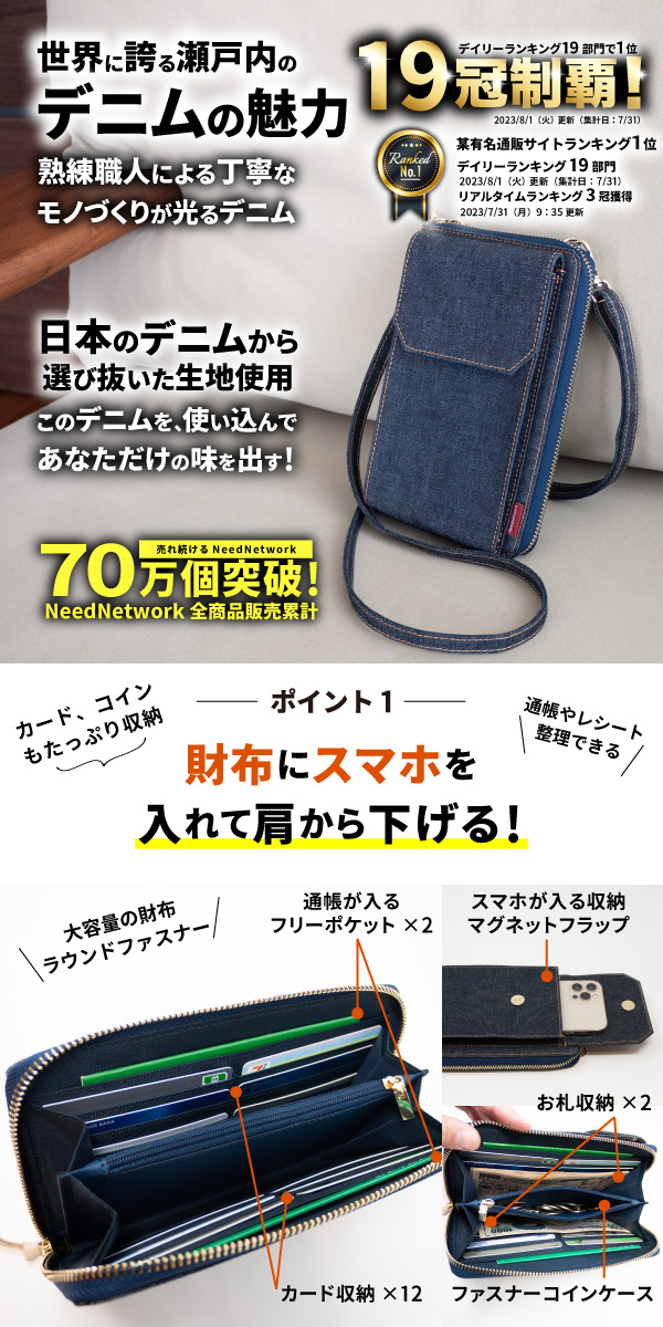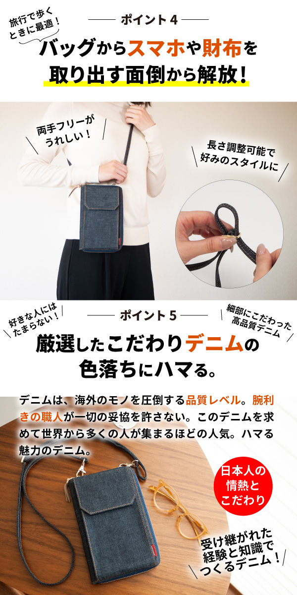 スマホショルダー 日本が誇るデニム スマホポーチ レディース お財布 斜めがけ スマホポシェット スマホケース 縦型 お財布ポシェット