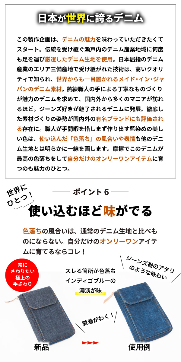 ■ポイント5、世界でも名高い日本製デニムから厳選したデニム生地を使用
