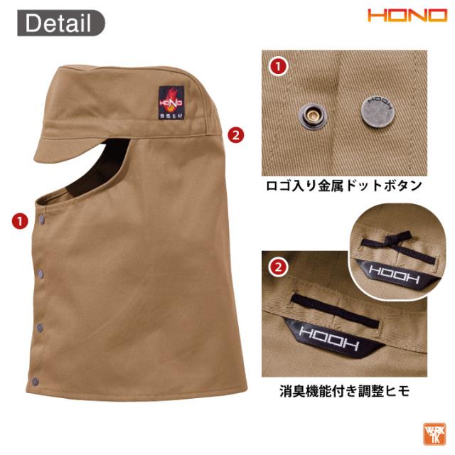 防炎服 溶接帽 丈長 ツバあり 綿100% 難燃 溶接作業 工場 作業着 耐炎 耐熱 制電 帽子 頭巾 年間 春夏 秋冬 HOOH 鳳凰 村上被服 ネコポス mh-422