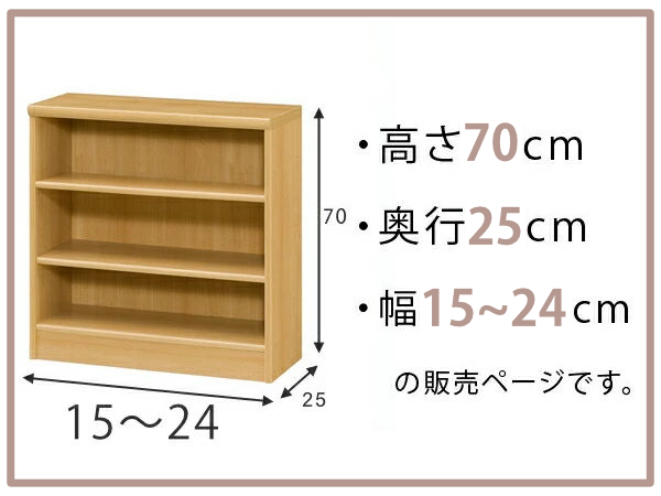 オーダー本棚 標準棚板タイプ 幅15-24cm 奥行25cm 高さ70cm ( 本棚 ラック オーダー 多目的 棚 壁面収納 日本製 オープンラック リビング収納 収納 家具 シェルフ 壁面 )