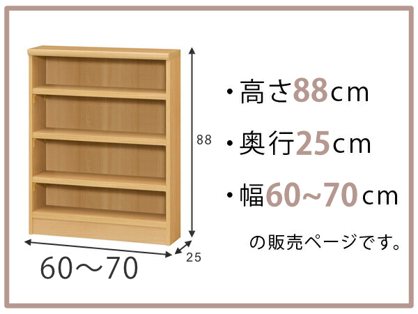 オーダー本棚 標準棚板タイプ 幅60-70cm 奥行25cm 高さ88cm ( 本棚 ラック オーダー 多目的 棚 壁面収納 日本製 オープンラック リビング収納 収納 家具 シェルフ 壁面 )