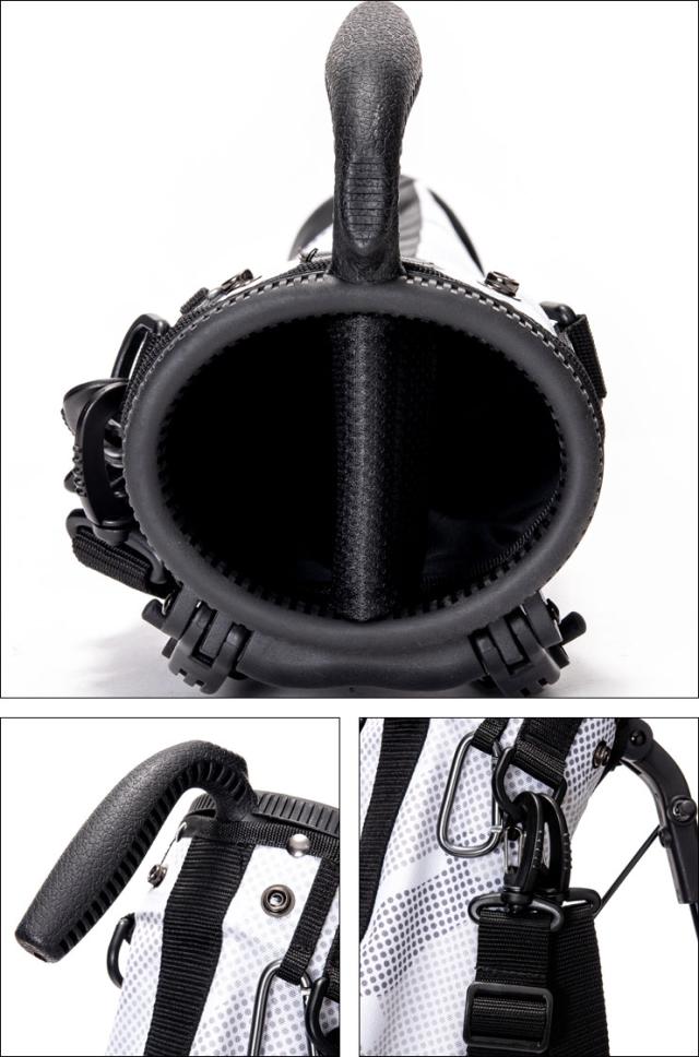 ドットで表現したカモ柄デザインのファブリックセルフスタンド。ポケットがついており、グリーン周りや練習場で活躍できるアイテム。