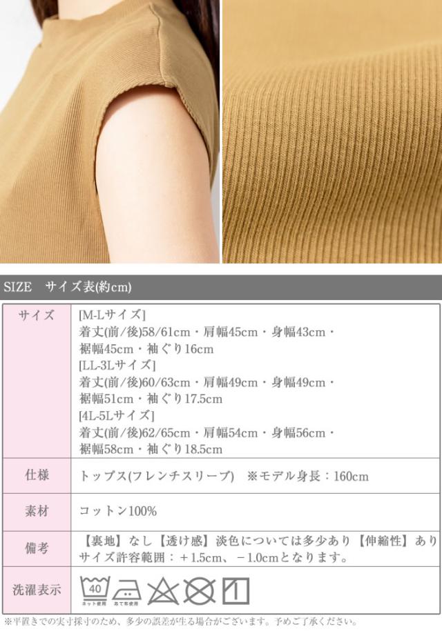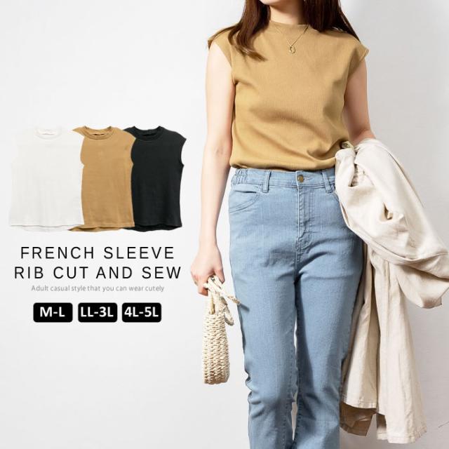 カットソー フレンチスリーブ レディース ゆうメール便送料無料 トップス ノースリーブ 大人 かわいい きれいめ 5営業日以内入荷 大きいサイズ レディース M L LL 3L 4LLARU ラルー フレンチスリーブリブカットソー
