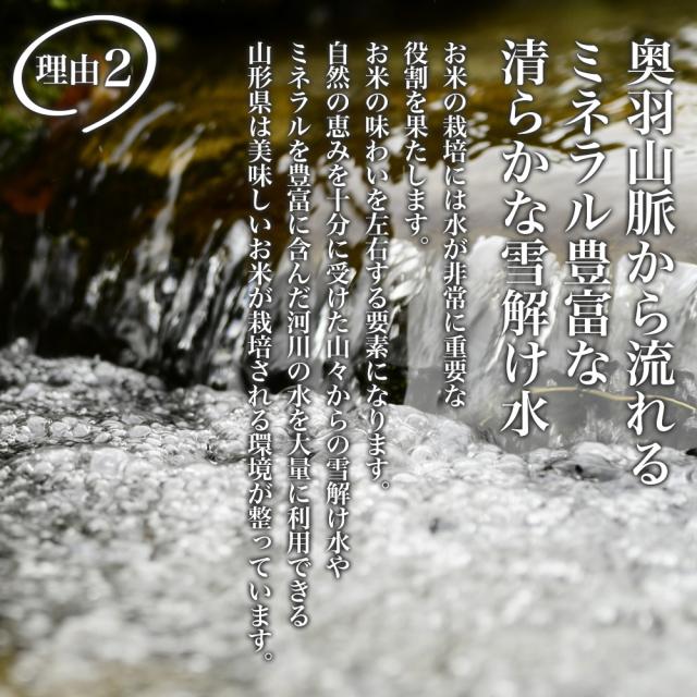山形県は四季の変化が鮮やかで、豪雪は山にたくわえられやがてミネラル豊富で豊かな湧き水となって水田に注ぎ、肥沃な土壌に加え、年間・昼夜の温度差が大きいことから稲作には最適な条件を備えた土地といえます。