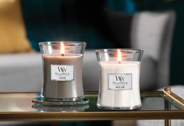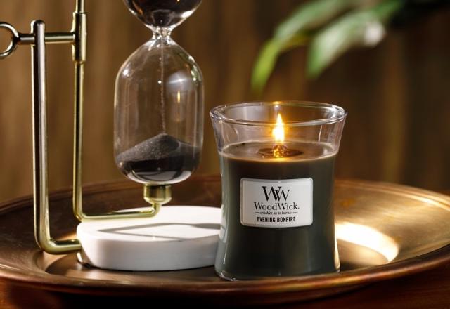 火を灯すと暖炉のように「パチパチ」音がする人の感覚に訴えかける、ユニークでスタイリッシュなアロマキャンドル「ウッドウィック ジャーM」。
