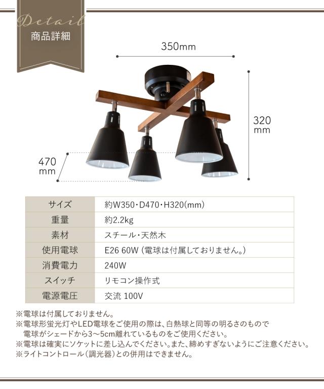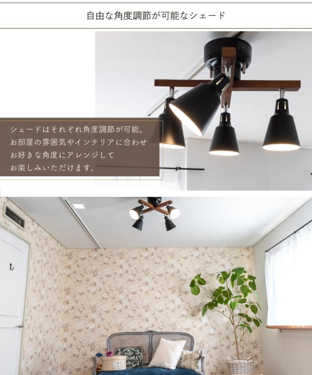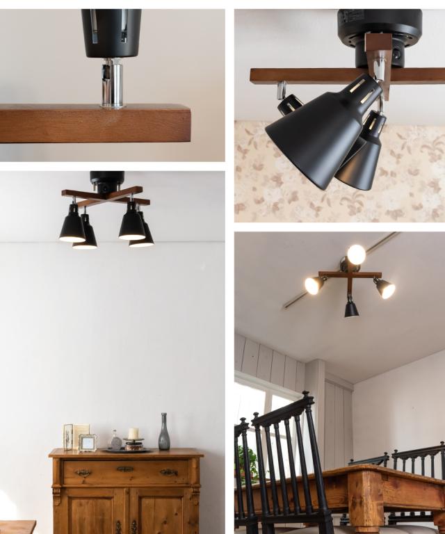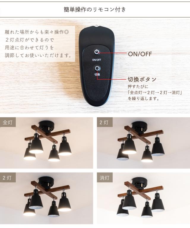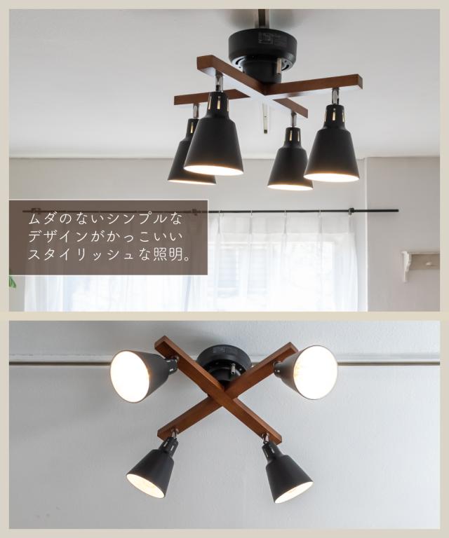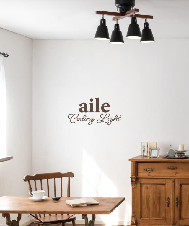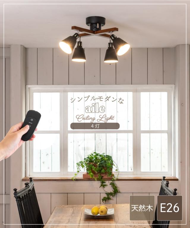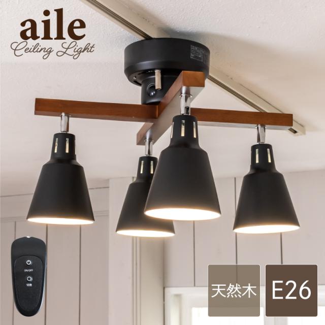 シーリングライト 照明 おしゃれ LED リビング ダイニング 寝室 北欧 シンプル モダン インダストリアル ビンテージ アンティーク 照明器具 天井照明 間接照明 ブラック 天然木 スチール リモコン 4灯 E26 エール aile CCN