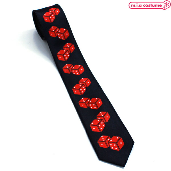 1307J■【送料無料・即納】B品 ネクタイ 細身ダイス柄 色:黒×赤 ブラック レッド サイコロ カジノ パンク スクール カジュアル オシャレ ハロウィン コスプレ