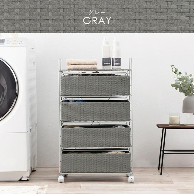 ■組立式■キャスター付取っ手を持って引出しを運べるので洗濯物の収納や片付けが効率的に。樹脂製なのでお手入れしやすいランドリー収納です。