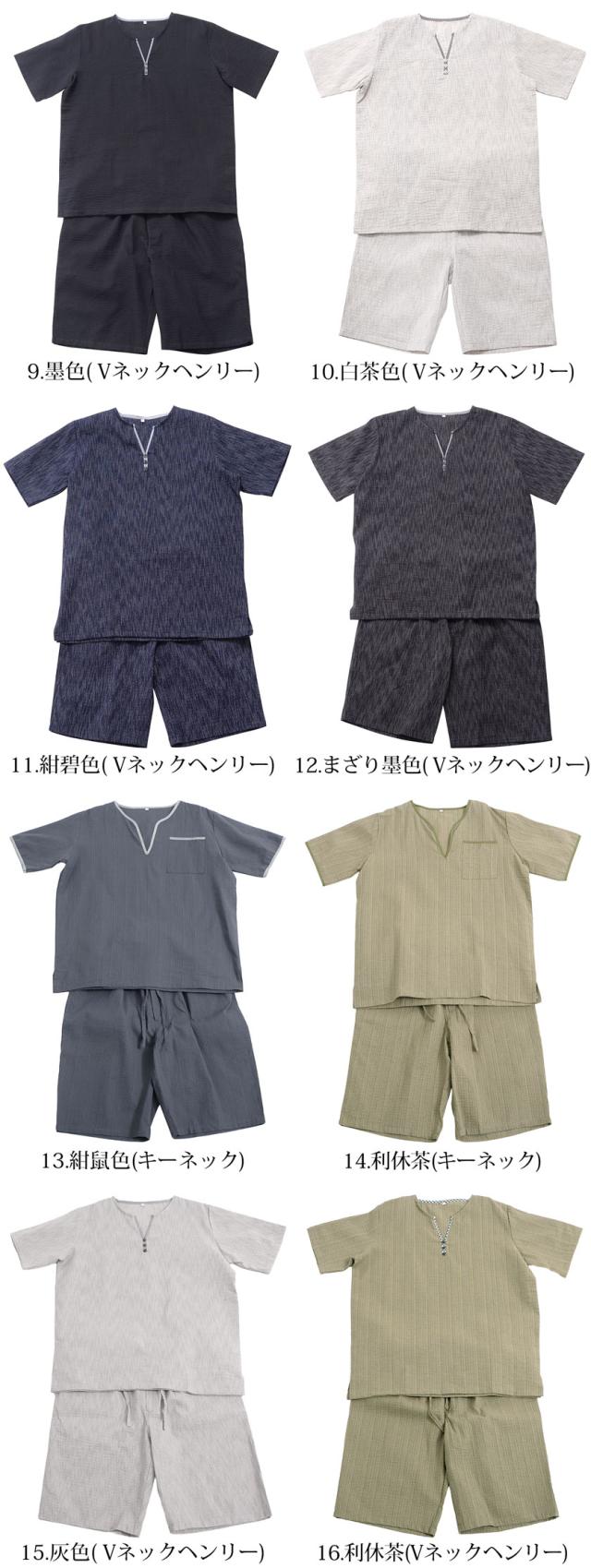 1.生成(キーネック) 2.墨色(キーネック) 3.白茶色(キーネック) 4.紺碧色(キーネック) 5.まざり墨色(キーネック) 6.灰色(キーネック) 7.生成(Vネックヘンリー) 8.紺鼠色(Vネックヘンリー) 9.墨色(Vネックヘンリー) 10.白茶色(Vネックヘンリー) 11.紺碧色( Vネックヘンリー) 12.まざり墨色(Vネックヘンリー)