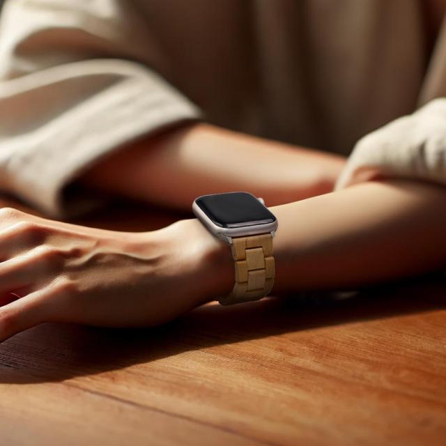 なめらかで温かみのある天然木を使用したアップルウォッチ専用取替ベルト。