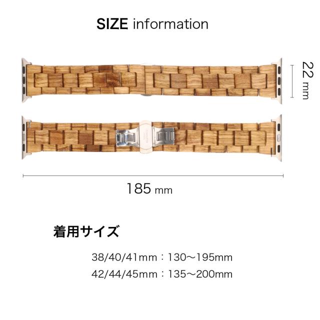 | 着用可能サイズ | 38/40/41mm:約125〜195mm 42/44/45mm:約135〜205mm |
