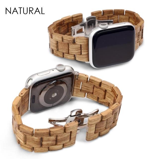 アップルウォッチ 天然木 バンド WOOD AppleWatch ベルト 3連 おしゃれ 木製 高級感 メンズ レディース Apple Watch シリーズ1 2 3 4 5 6 7 8 SE 38mm 40mm 41mm 42mm 44mm 45mm アップルウォッチバンド